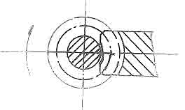 蝸輪蝸桿接觸面積是蝸輪減速機(jī)質(zhì)量的綜合反映。以前裝配工靠手盤動減速機(jī)的感覺來判定裝配是否到位,不能正確判斷蝸輪蝸桿的接觸面積及位置。現(xiàn)建立試車臺,將裝配好的蝸輪減速機(jī)的蝸桿涂上紅丹,在試車臺上運(yùn)轉(zhuǎn),觀察接觸斑點(diǎn)位置,根據(jù)接觸斑點(diǎn)位置來調(diào)整蝸輪位置。要求接觸斑點(diǎn)位置稍偏于嚙出側(cè),使入口形成油楔(見圖1),然后進(jìn)行跑合。