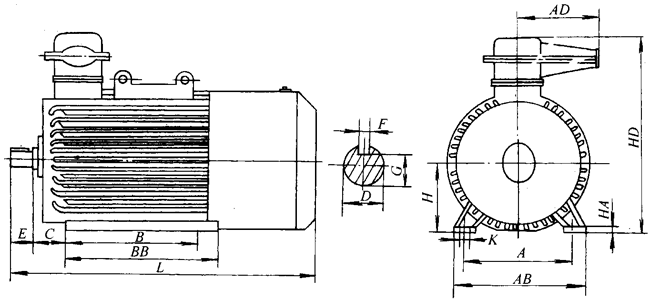 YA系列增安型中型高壓三相異步電動機外形及安裝尺寸(6kV或10kV) |