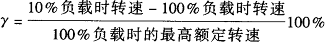 配有控制裝置的調(diào)速電動機的轉(zhuǎn)速-轉(zhuǎn)矩特性曲線,如圖2所示。按照控制器的轉(zhuǎn)速變化率定義是當電動機自10%負載到額定負載范圍內(nèi)變動時,控制裝置能根據(jù)測速發(fā)電機信號自動調(diào)整勵磁,使輸出轉(zhuǎn)速基本上維持恒定。用以表征轉(zhuǎn)速-轉(zhuǎn)矩曲線的參數(shù)是轉(zhuǎn)速變化率γ 其定義為