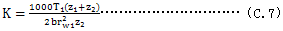 fm——在一定的嚙合油溫條件下的嚙合磨擦因數。假如節線速度 v為2m/s<v<25m/s和K值為1.4N/mm2<K<14N/mm2時,則fm可用公式(C.6)來計算。超過此范圍時,嚙合磨擦因數應用實驗方法確定。