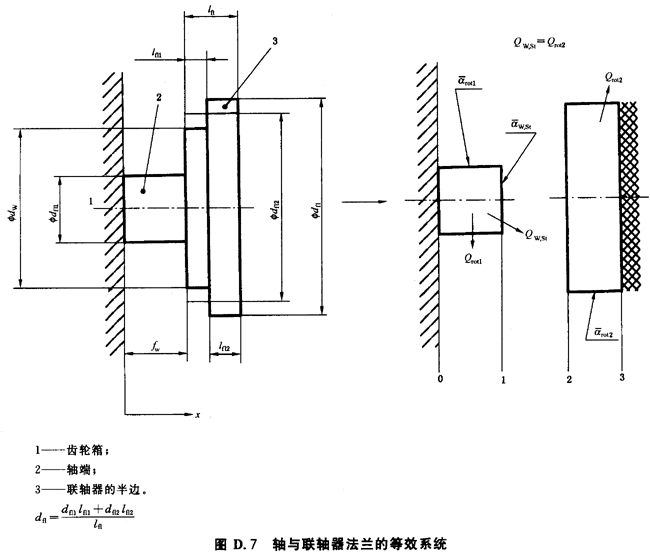 橫截面積Aq,sh與Aq,fl根據當量直徑dsh和dfl分別計算(見圖D.7)。相當于從軸到聯軸器的熱流的表面熱傳導系數α*sh,face由以下關系式計算:
