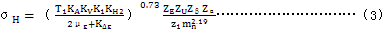 5.1.3雙圓弧齒輪齒面接觸應(yīng)力σH按式(3)計(jì)算: