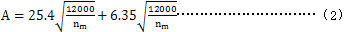 裝配好的齒輪裝置作工廠試驗時,在最高連續轉速或買方規定的其他轉速下運行。在靠近每個徑向軸承的任一平面內測量振動的雙振幅不得超過式(2)所規定 的值或50μm。取兩值之較小者。