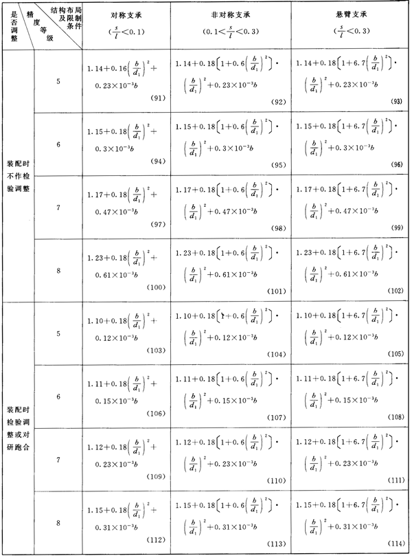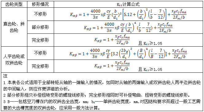 由于影響因素眾多,確切的載荷分布系數(shù)應通過實際的精密測量和全面分析已知的各影響因素的量值綜合確定。這時,要論證應用方法的精確度和可靠性,并明確其前提條件。這種方法特別適用于調質小齒輪寬徑比b/d>1.5或硬齒面小齒輪b/d>1.2的重要齒輪裝置的校核計算。