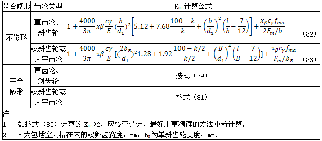 式中:KHβ——接觸強度計算的齒向載荷分布系數(shù),見6.3.2或6.3.3;
