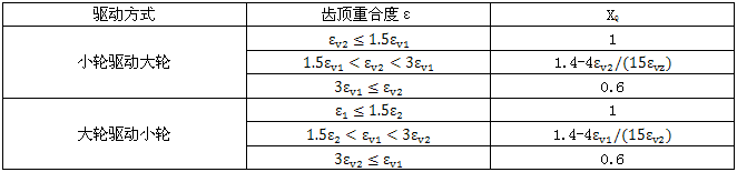 重合度系數Xε是將假定載荷全部作用于小輪齒頂時的局部瞬時溫升θflaE折算成沿沿嚙合線的積分平均溫升θflaint的系數。