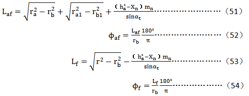 式中:ξ頂和ξ根——齒頂點和齒根起始檢驗點的徑向直線與Y軸的夾角,(°)