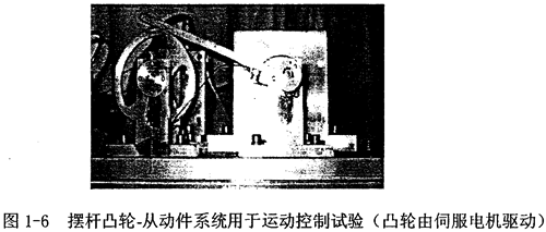 姚燕安作了凸輪機構的主動控制的研究以及凸輪機構與伺服控制系統的集成研究,基于以最佳控制理論導出改善凸輪從動件系統運動特性以及抑制其殘余振動的轉速軌跡的設計方法,其實驗系統如圖1-6所示,由伺服電機驅動擺動從動件平面凸輪機構。