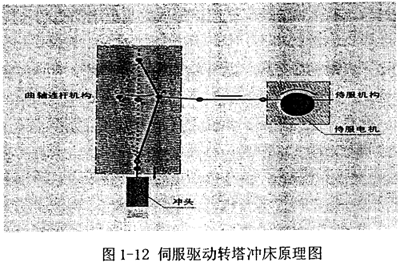 日本Muratec公司采用伺服驅動系統來改善轉塔式沖床的工作性能等,如圖l-12,采用伺服馬達控制沖頭的工作方式實現了較同類機械高出150%的沖壓速度,同時通過對軸速度的最佳設定,抑制了振動,大幅度降低了沖壓音量。