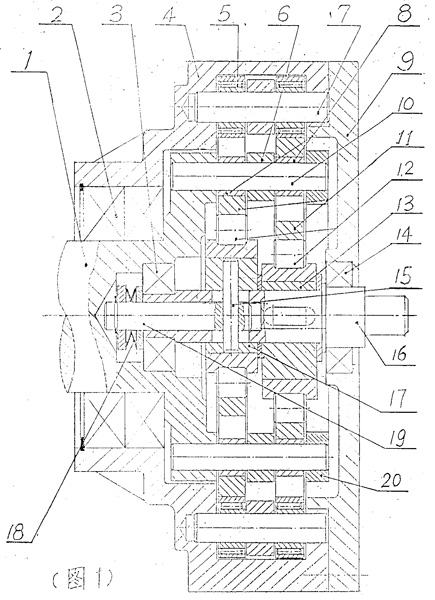 零回差擺線減速機屬于精密傳動機械領域,是高新智能技術的重要部件,可以取代進口價格昂貴的RV傳動。本發明系根據兩只齒輪錯開小角度消除齒間間隙的原理:雙偏心套中一只固定,另一只在正向工作時錯開180°,而停止時則反向偏轉一小角度實現零回差。本發明比之CORT傳動,其優點:價格低得多;工藝性能好;毋需專用機床和特大專用軸承及傳動比范圍大。