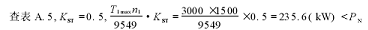 P2 =230kW, 轉速 n2 =34.6r/min, 載荷均勻, 每天工作 10h, 每小時啟動三次, 電動機最大啟動轉矩