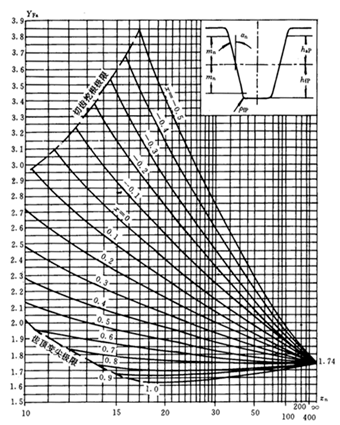 應力修正系數Ysa僅能與齒形系數YFa聯用,并且只能用于εan<2的齒輪傳動。