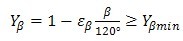 螺旋角系數Yβ是考慮螺旋角造成的接觸線傾斜對齒根應力產生影響的系數。其數值可由式(214)和(215)計算。