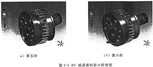 對上圖有限元模型進行模態計算時不必求出全部的固有頻率和振型,越是低價模態,對振動影響越大,通常取前5~10階模態,精度就已足夠。本課題在分析中求解了前11階模態,這些模態的固頻率和振型情況見表5-1,圖5-2僅給出減速器的前6階固有振型,通過振型圖和各階振型的動畫顯示,可直觀地分析RV減速器的動態特性。