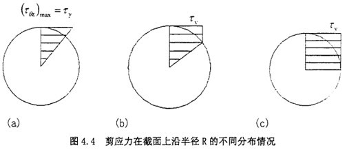 此時(shí)剪應(yīng)力在截面上沿半徑R的分布情況見如圖4.4(b)所示。