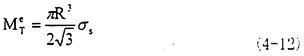 (2)當(dāng)圓軸整個(gè)截面都進(jìn)入塑性狀態(tài),如圖4.4(c),此時(shí)的扭矩就是圓軸的塑性極限