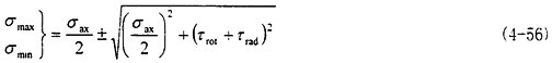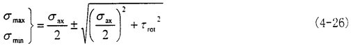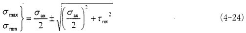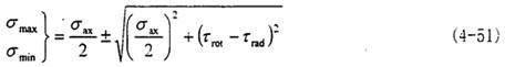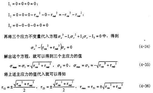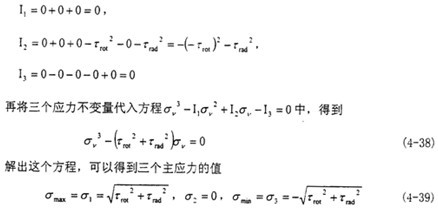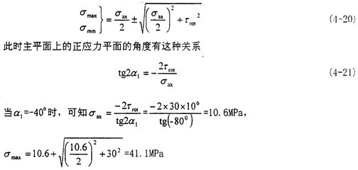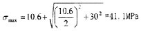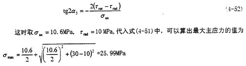 這時(shí)取σax=10.6MPa,τrad=10MPa,代入式(4-56)中,可以得出最大主應(yīng)力值為