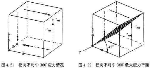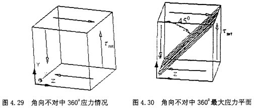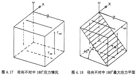由圖示可知,此時(shí)單元體的受力其實(shí)是屬于純剪切狀態(tài),只是此時(shí)的剪切應(yīng)力為τrad與τrot的方向相同,而在1800時(shí)方向相反,所以有