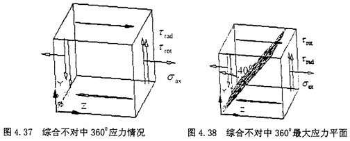 由式(4-39)可知,最大應(yīng)力平面剛好在垂直于正弦矢量相加的方向。這與徑向不對(duì)中90°位置的情況有些相似。