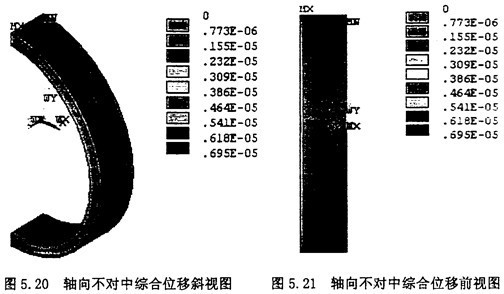 綜合不對中的模擬過程基本上類似軸向不對中,不同的是這時的位移變成了既有軸向的位移,還有徑向位移以及角向位移。其位移圖如圖5.42所示。