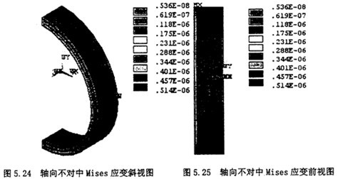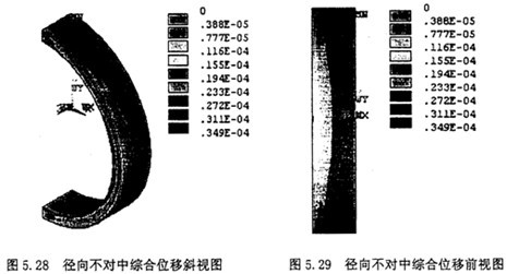 重復5.4.2節中的(1),(2),(3),(4),(5),(6)步驟。然后開始施加綜合的附加載荷。由于綜合位移使得橡膠圓環附加的徑向拉應力σax,附加的剪應力τrad,附加的角向應力σax,以及由橡膠圓環旋轉扭矩產生的剪應力τrot。所以綜合不對中的應力情況應該是σax、σax、σax與σrot的疊加。施加綜合附加載荷后的圖形圖5.43所示。
