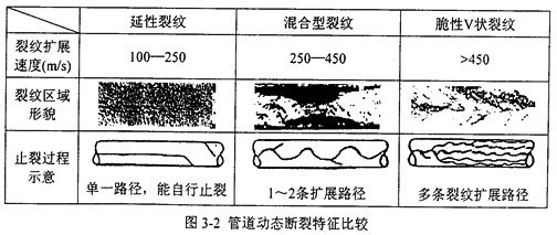 這種說法的依據是:對于前一種情況,從裂源處開始,減壓波前沿的移動速度比斷裂擴展速度更快,使得裂紋尖端的管壁應力因減壓波的通過而不斷減小,并最終降至止裂應力水平以下而使裂紋止裂;反之裂紋尖端的壓力不發生變化,斷裂將持續擴展,因為裂紋尖端的動態襲紋驅動力不會減小。