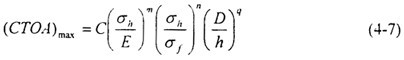 (CTOA)c可以通過攝像機從實物裂紋擴展的照片上觀測得到,也可同CVN或DWTT實驗建立聯系。Wilkowski分別建立了基于CVN和DWTT吸收功的(CTOA)c經驗算法,模型如圖4-15。另一種方法是通過測定作用于試件上的總功,從裂紋擴展能的角度計算(CTOA)c。
