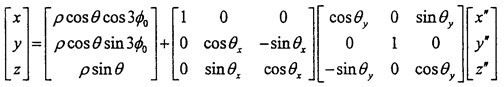 由式(3-6)可知|θy|<θ,|θx|<θ一般來說θ值非常小,則θy和θx則更小。到此方向余弦矩陣[Coo″]的所有項均可求出。其具體的形式如下(為簡化書寫將θy作為已知參數代入):