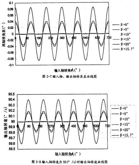 故繪出它們在不同的軸夾角β下隨輸入軸轉角 的變化曲線圖,以便進行直觀的分析。