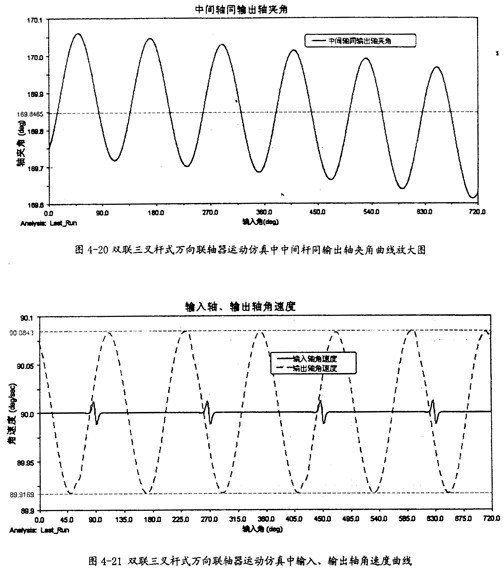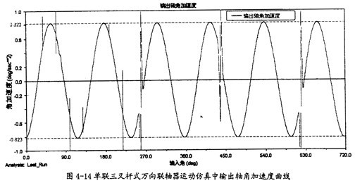 通過以上的結果分析,可以確定的說,單聯三叉桿式萬向聯軸器的理論分析結果和其計算機仿真的結果可以相互驗證,這在一定的程度上說明以前的理論分析是正確的。