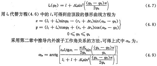 若令(4.30)式和(4.31)式中的E=0,得到的就是無偏距時的內齒圈齒廓理論方程式(2.21)及公法線長度(4.18)式。