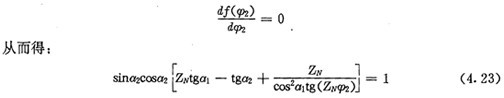 上式就是齒廓AB上與跨槽數為k的齒廓具有公法線的點的條件。當k確定后,若存在公法線,則由(4.17)式并結合基本關系式(2.38)等可解出