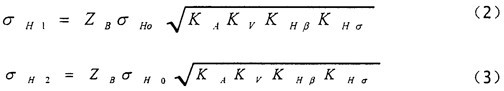 小輪和大輪的計算接觸應力σH1、σH2分別按下述兩式確定: