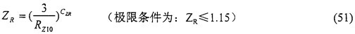當所計算的齒輪要求持久壽命時,ZR可由式(51)計算得出,