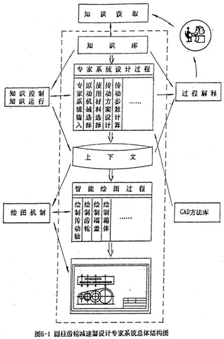 完整的設計一臺圓柱齒輪減速器是一個復雜的過程,欲能夠實現圖1-l 及圖1-2-1 、圖1-2 -2、圖1-2-3如此眾多種類的圓柱齒輪減速器的設計專家系統任務將是更加艱巨,如何組織、構成系統,必須進行分析。正確、合理地分析設計過程的同時,充分考慮計算機資源的影響制約因素將對圓柱齒輪減速器專家系統設計的成敗起重要的作用。第一章曾經討論過圓柱齒輪減速器設計的全過程,在此采用的分析方法是:在系統的目的和總目標的指導下,對各設計階段分層次,在各個層次有不同的分目標,并以各個層次的分目標,構造出對應于系統總目標以及各個層次分目標的系統組成要素,這些要素的相互關系以及在系統階層上的分布形式和整體的協調形式,這就保證了系統在對應于系統總目標和環境因素約束集的條件下,構成系統組成要素集,這些要素集之間相互關系集以及要素集及相關關系集在階層分布上最優結合,導致系統輸出為最優。