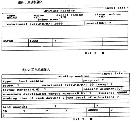 系統的輸入是專家系統的“開場條件”,人工設計的方法是由定貨單位向設計人員提供任務書(以口頭或書面形式),設計人員通過這些已知條件進行設計工作。專家系統則要求設計人員(或由定貨人員)與計算機進行“對話”,以便使專家系統了解原始的已知條件。事實上,由于受人工智能和計算機技術發展的限制,還不能同計算機形成視、聽對話,因而,圓柱齒輪減速器設計專家系統仍采用傳統CAD所采用的方法,即采用精確的輸入方式(或稱數據輸入方式而非語言物入方式)。