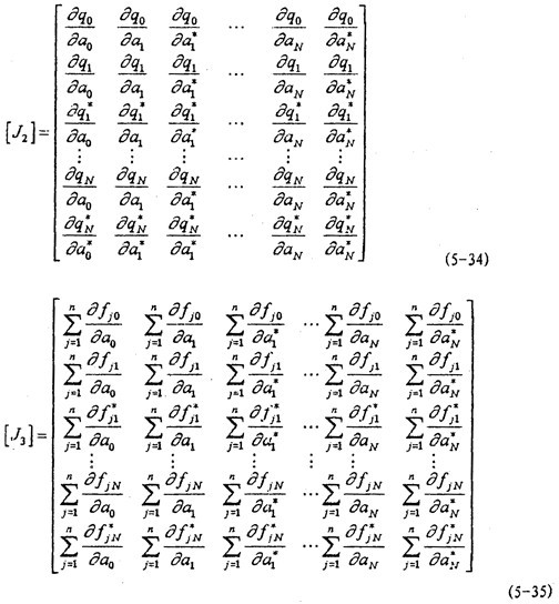 [J3]的計算實際上就是偏導數 {fj({ a(k)})}/ { a(k)}的計算。計算方法與計算 {q({ a(k)})}的方法類似,故不再贅述。對于[J2],[J3]、分別有式(5-34)、(5-35)。