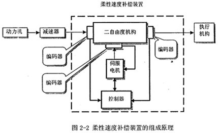 在充分研究可調整機構、混合驅動機器和變速輸入伺服系統的一些研究成果后,交叉融合了他們的一些優勢特點,提出柔性速度補償的概念,它是這樣一類機器:是針對執行機構的負載引起的速度波動進行適度柔性補償的一類機器,它不是調節原動機和執行機構,而是在兩者之間單獨設計一個調速單元,這一單元由機械部分和控制部分組成,機械部分為一多自由度機構,由常速電機和伺服電機分別驅動,控制部分包括信息處理系統和檢測系統,當原執行機構的輸出速度產生波動時,檢測系統和控制器檢測判斷波動的大小、位置等數據,如果超過允許范圍時,由控制器控制伺服電機動作,經控制系統和多自由度機構實時協調配合,以產生一個反向速度波,和原速度波正好疊加抵消,達到適度柔性的速度補償目的,最終為執行機構提供一較平穩的速度輸入。