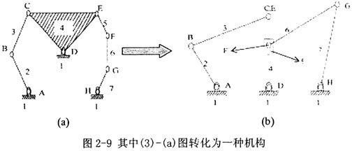 (1)一般化,是指將具有機件和運動副的原始機械裝置,轉化為只有一般化連桿和一般化(運動)副的機構,這樣形成的閉環鏈稱為一般化(運動)鏈。