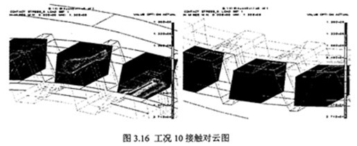 按考慮偏心距誤差影響及考慮齒厚誤差影響的兩個極限狀態,組合為十種情況進行計算。十種計算工況見表3.2所示。考慮齒厚誤差影響的兩個極限狀態分別是齒輪的輪齒最薄、最厚,偏心距誤差的兩個極限狀態分別是偏心軸的偏心距最大、最小兩種情況。種接觸情況的計算結果分別由表3.3~3.7列出。