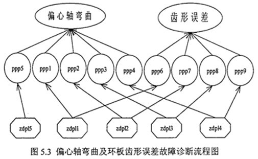 根據(jù)以上分析,本文用圖形化的智能故障診斷預(yù)報(bào)系統(tǒng)(INCON FIDPS), 建立了雙環(huán)減速器偏心軸彎曲及環(huán)板齒形誤差兩種故障的推理流程。如圖5.3 所示。
