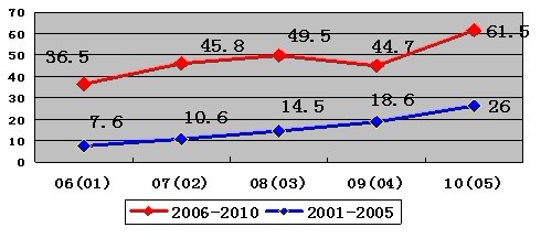 2006年至20010年雖然總量有較大的增長,但增長速度趨緩。