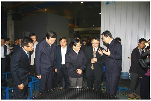 4月14日上午,在江蘇省委書記、省人大常委會主任羅志軍,江蘇省委副書記、省長李學勇及省市相關部門領導陪同下,由浙江省委書記、省人大常委會主任趙洪祝率領的浙江省黨政代表團來到南高齒風電產業園參觀考察。集團公司董事長兼總經理胡曰明等集團公司領導率員工熱情接待了來賓。代表團在參觀期間,詳細了解了南高齒生產研發、市場拓展、人才戰略和二次創業等各方面情況,對南高齒業已成為國際最大風電裝備制造企業給予了高度評價,并充分肯定了南高齒為中國先進制造業和綠色能源產業發展所起到的積極貢獻,希望南高齒在2011年能有長足發展,二次創業工作越做越好。