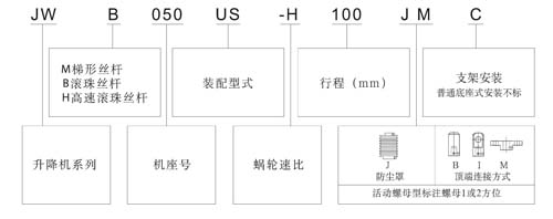 JWM型(梯形絲桿型)適用于低速、低頻率的場合,主要構成部件為:精密梯形絲桿副與高精度蝸輪蝸桿副。