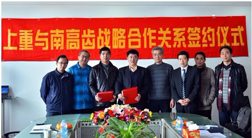 上重與南高齒簽署戰(zhàn)略合作協(xié)議(左三:高精公司陳永道總經(jīng)理,左四:上重戴世杰總經(jīng)理)