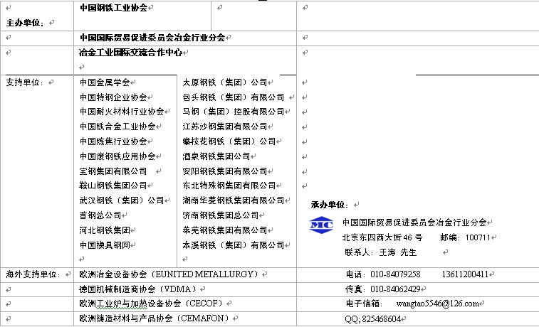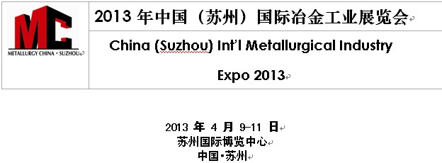 經國家有關部門批準,由中國鋼鐵工業協會,中國貿促會冶金行業分會,冶金工業國際交流合作中心共同主辦的“2013年中國(蘇州)國際冶金工業展覽會”將于2013年4月9-11日在蘇州國際博覽中心舉辦,兩年一屆。