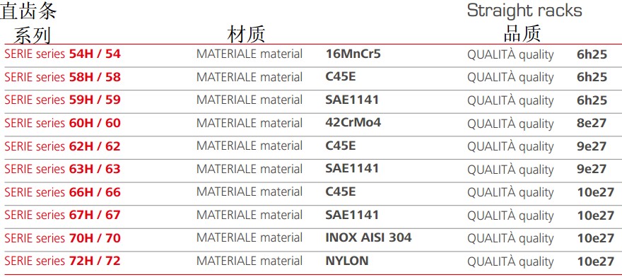 Gambini可使用不同類型的原材料生產高精度的直齒條和斜齒條。我們生產的齒條模數范圍為0.5到30,品質等級范圍為5到10。品質等級為5的齒條最大長度為1000mm,如果品質等級為6,可生產的單件長度可達2000mm.