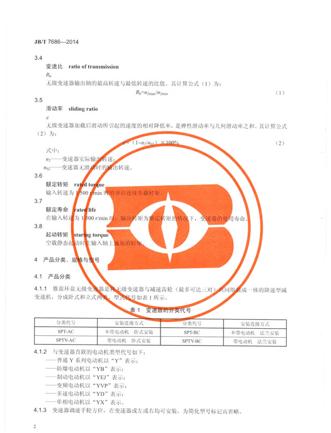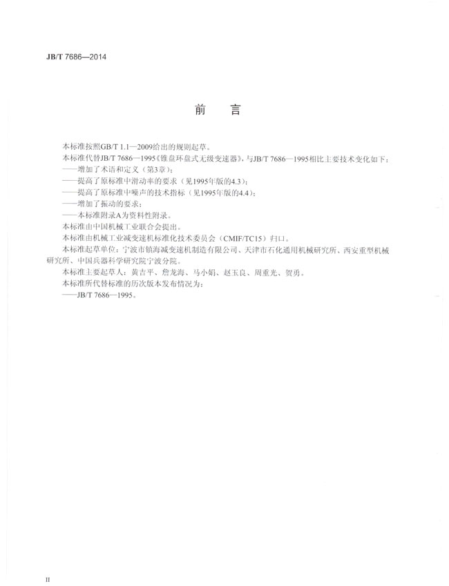 錐盤環盤式無級變速器(JB/T7686-2014)
