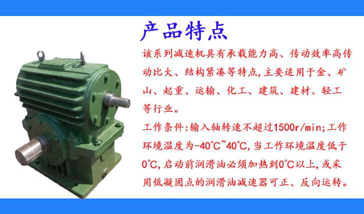 該系列減速機具有承載能力高、傳動效率高傳動比大、結構緊湊等特點,主要適用于金、礦山、起重、運輸、化工、建筑、建材、輕工等行業。