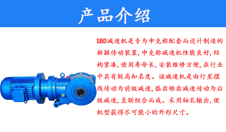 SBD減速機(jī)是專為申克稱配套而設(shè)計(jì)制造的新穎傳動(dòng)裝置,申克稱減速機(jī)性能良好,結(jié)構(gòu)緊湊,使用壽命長(zhǎng),安裝維修方便,在行業(yè)中具有較高知名度。該減速機(jī)是由行星擺線傳動(dòng)為前級(jí)減速,弧齒錐齒減速傳動(dòng)為后級(jí)減速,直聯(lián)組合而成。采用軸孔輸出,使機(jī)型獲得盡可能小的外形尺寸。
